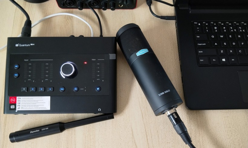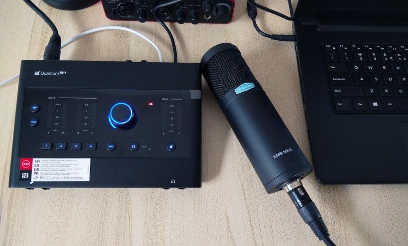 X50B MKII麦克风“JFET+镀金振膜”的组合在于追求高解析力和独特的声音质感,试用环节将围绕该目标进行。测试设备如下图所示,使用的音频接口为PreSouns Quantum ES4,DAW为Abletonlive。