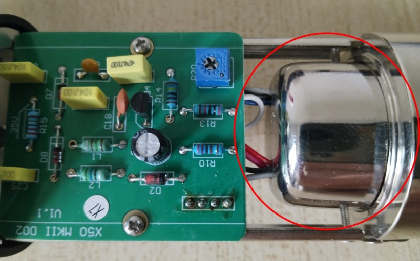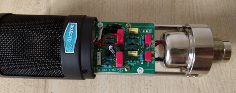 麦克风结构方面,采用了JFET(结型场效应管),这是用于阻抗转换和信号放大的关键元件,直接影响话筒的噪声、动态范围和音色特性。下图显示了X50B MKII内部构造。