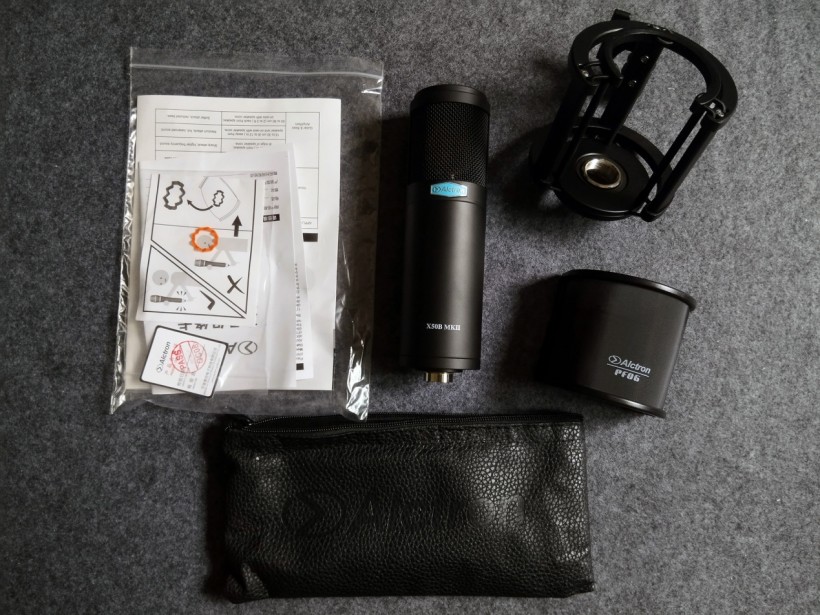 产品标配:X50B MKII麦克风、全金属防震架、防喷罩、革制便携收纳袋、用户文档。见下图所示。