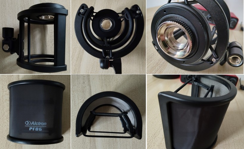卡农接口上自带螺丝扣,用于安装防震架。产品标配中提供了配套的全金属防震架和防喷罩,与X50B MKII麦克风一同作为套装,放置于航空箱内(见下图所示)。这同样遵循了中高档麦克风常见的配置标准。