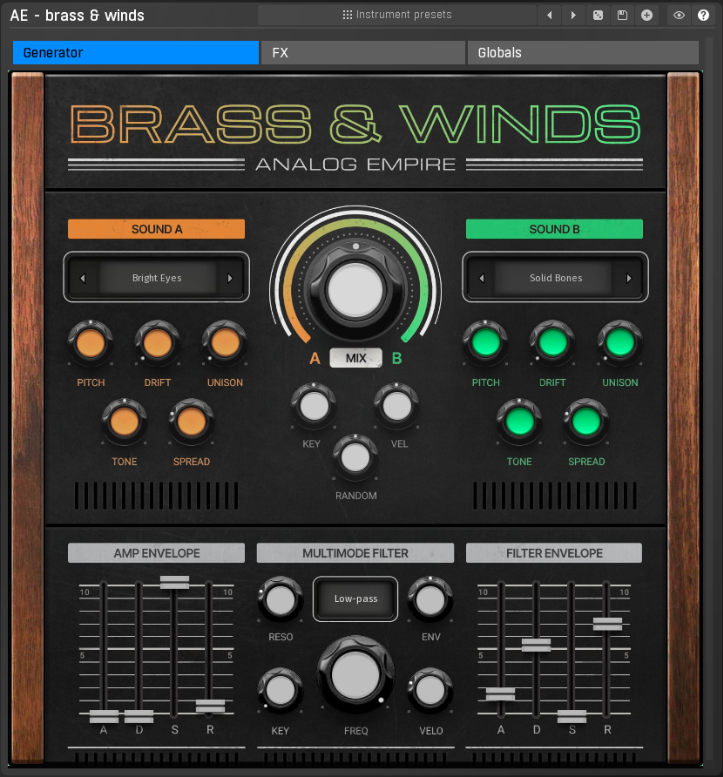 Analog Empire: Brass & Winds搭载MeldaProduction标志性的多功能性,进一步增强混合音色,提供先进的调制选项和深层的音色塑形控制功能。