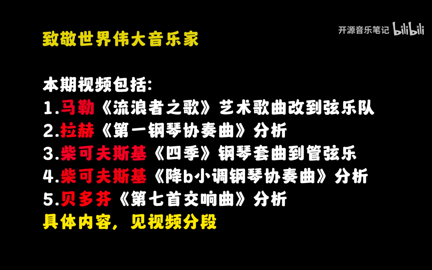 致敬伟大音乐家(马勒、拉赫、柴、贝多芬)全程3小时超强音乐分析