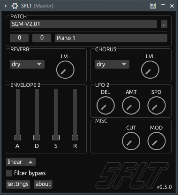 SFLT提供比大多数.sf2播放器更深层次的控制,同时考虑了初学者和高级用户的需求,高度兼容性SoundFont 2.01规范。用户可以通过ADSR包络控制、调制选项,甚至板载混响和合唱效果,来调制音色。而且,SFLT的CPU占用低,轻量级。